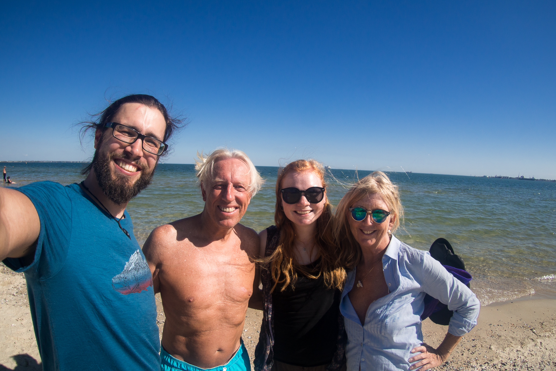 Ohne irgendeine Ahnung zu haben, wie es jetzt weitergehen soll, verschanzten wir uns die ersten 2 Tage in ein Airbnb, buchten einen neuen Flug, organisierten unser Visa für Indien, dass dann letztendlich nur 30 Tage gültig ist, weshalb wir wohl noch einige Zeit hier verbringen würden und wir versuchten unseren FreundInnen in Indien zu erklären, wie wir so naiv sein konnten. Glücklicherweise konnte uns ein Bekannter von Leni’s Freund Nipun bei sich für fast eine Woche aufnehmen. Mit AJ, der ursprünglich aus Indien kommt, konnten wir die Zeit in Melbourne richtig genießen und lernten die 4-Millionen-Einwohner-Stadt kennen und lieben. So unglaublich vieles kann man hier erkunden, wenn die australische Hitze nicht zu stark ist. Von riesigen barrierefreien Parks, kunstvoll gestalteten Straßen, der wohl beeindruckendsten Bücherei der Welt, zu Straßenfesten, gratis Wifi-Wohnzimmern bis zu sauberen Sandstränden mit klarstem Meer, wo wir uns auch mit Gaby und Karli aus Salzburg trafen.