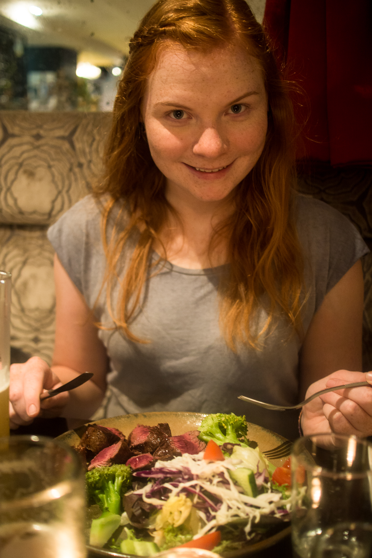 Sydney ist groß, laut und voller Leute aus unterschiedlichsten Ländern und Kulturen. Herrlich! Etwas verregnet war unser Besuch, bei dem wir in einem Airbnb schliefen und tagsüber eine Sightseeing-Tour à la Maxi vollzogen. Erstes Ziel: Paddy’s Market, eine große Markthalle voller günstiger Souvenirs aus China. Next: Queen Victoria Building, mittlerweile eines der edelsten Shoppingcenter mit geschmückten Türmen, die von der Decke hängen. Danach: Karottenessend durch den Botanischen Garten zum wohl wichtigsten Must-see: dem Operahouse, architektonisches Meisterwerk, groß, eh schön. Am touristenbesetzten Hafen entlang, bis zur Harbour-Bridge. Zurück durch das Viertel „the rocks“, bis wir quasi über ein Restaurant stolpern, in dem wir das erste Mal blutiges Kangaroofleisch kosten, ziemlich zart, wenig Eigengeschmack.