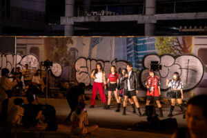 Tik-Tok-Stars beim Videodreh auf der Straße