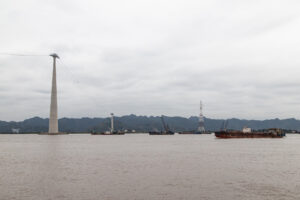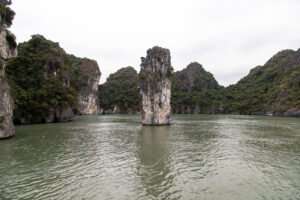 Fährfahrt nach Cat Ba (die großen Stützen links sind von einer Gondel)