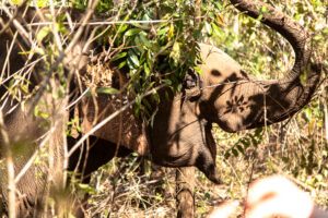 Wo21 Elefanten beim Sträucher ausreissen und fressen