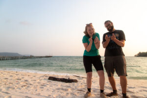 20 Tage Kambodscha: wir waren dort, wo der Pfeffer wächst, haben liebe Elefanten-Damen im Dschungel besucht, harte Straßenarbeit geleistet, mehr über die schreckliche Geschichte des Landes erfahren, super herzliche Menschen getroffen, wenig scharfes aber gutes Essen gegessen (auch versehentlich Maden), die größte Tempelanlage der Welt mit dem Fahrrad befahren, zahlreiche süße Äffchen bestaunt, an den schönsten Sandstränden der Welt gechillt, die Hitze ausgehalten, viel geschwitzt, sind durch den Dschungel gewandert, haben unsere erste Lebensmittelvergiftung im besten Guesthouse überhaupt auskuriert und am Ende eine Grenzerfahrung gemacht, die wir so nicht erwartet hätten.